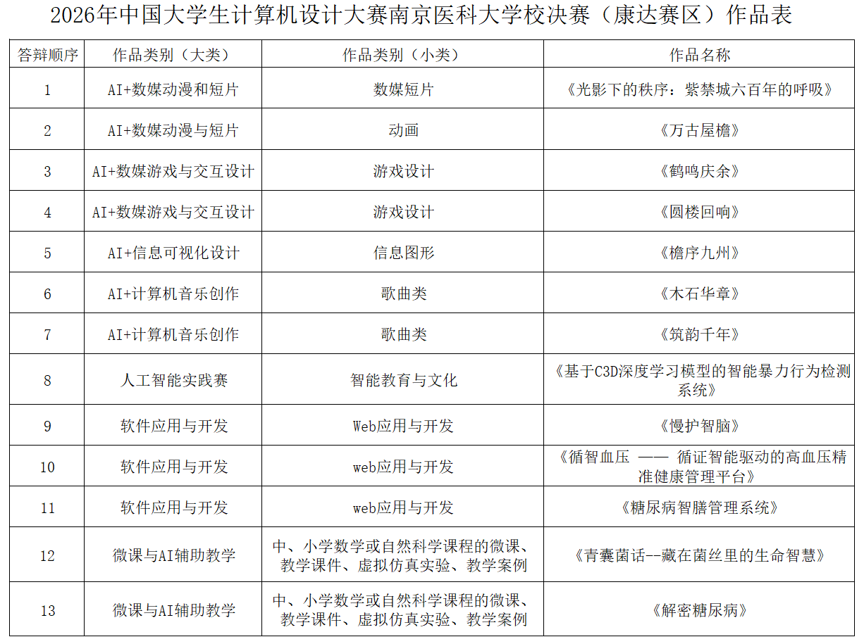 | 2026年中国大学生计算机设计大赛我院选拔赛顺利完成 | |||||