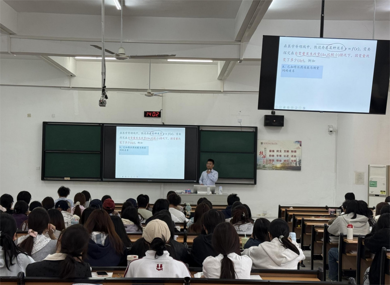 此次公开课由青年教师李阳老师主讲,授课内容为《高等数学》的“微分”部分。课堂伊始,李阳老师回顾了上节课的重点知识,并结合医药学领域实际应用场景导入新课,激发学生课堂专注力与学习积极性。李阳老师教学设计条理清晰、逻辑严谨,教学目标明确,课堂节奏把控得当,注重师生互动交流,善于引导学生主动思考,展现了扎实的教学基本功。